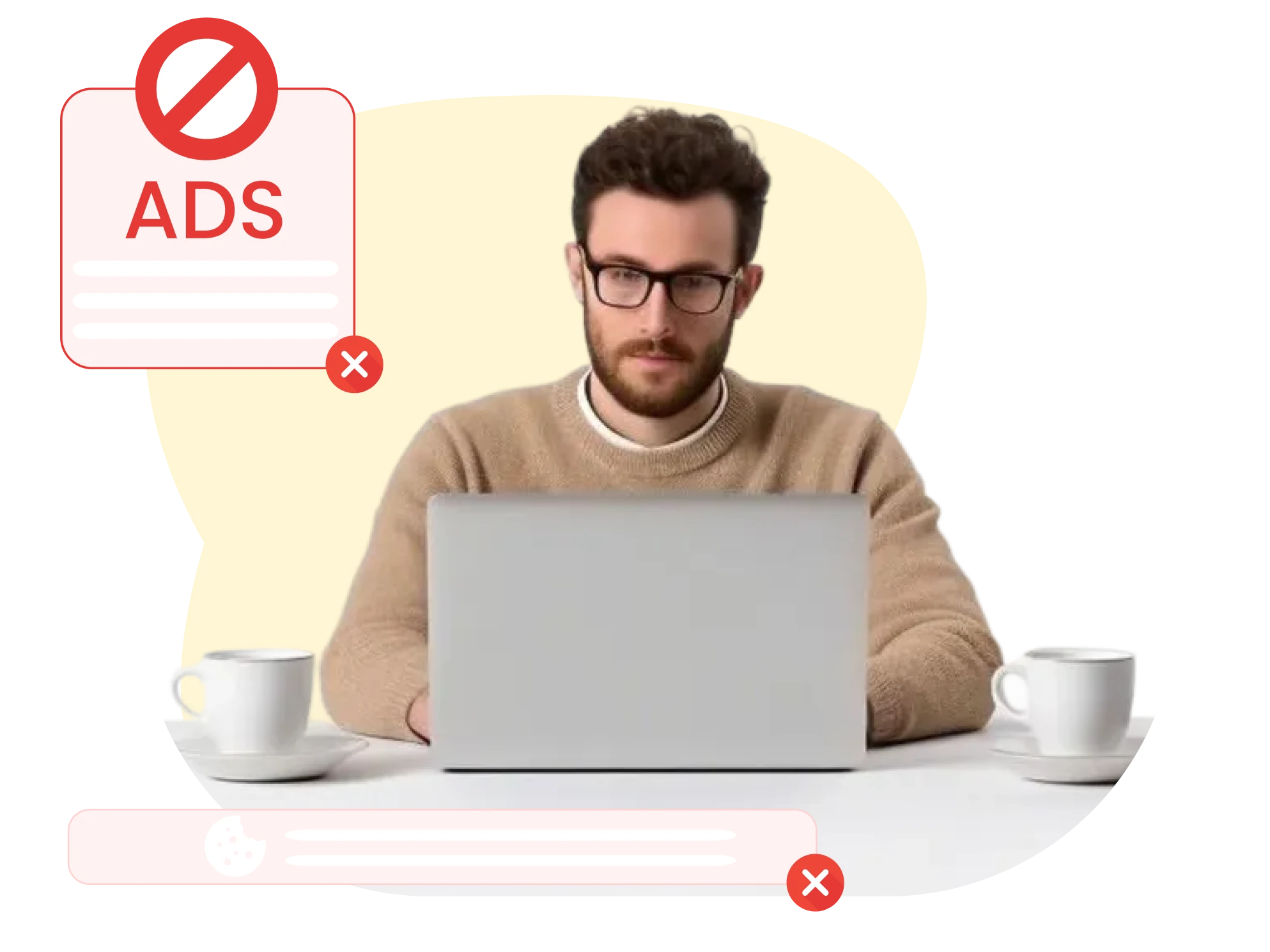 Automatically hide cookie banners, consent prompts, in-page popups, mobile app promos, and third-party widgets that interrupt your browsing.